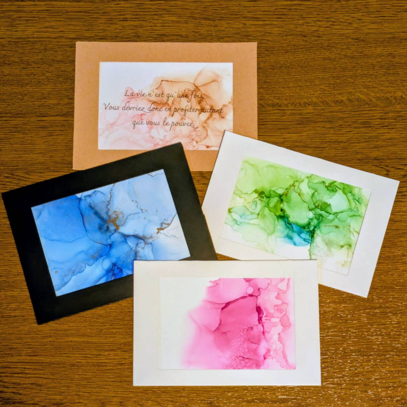 2色のインクを垂らし、風で広げて描く幻想的なアルコールインクアートのワークショップ