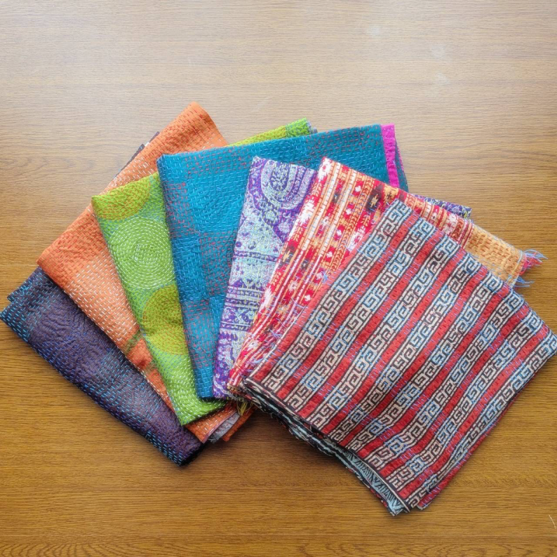 インドの民族衣装のサリーを2枚合わせてチクチク手縫いで繋ぎ合わせた『カンタショール』の販売。