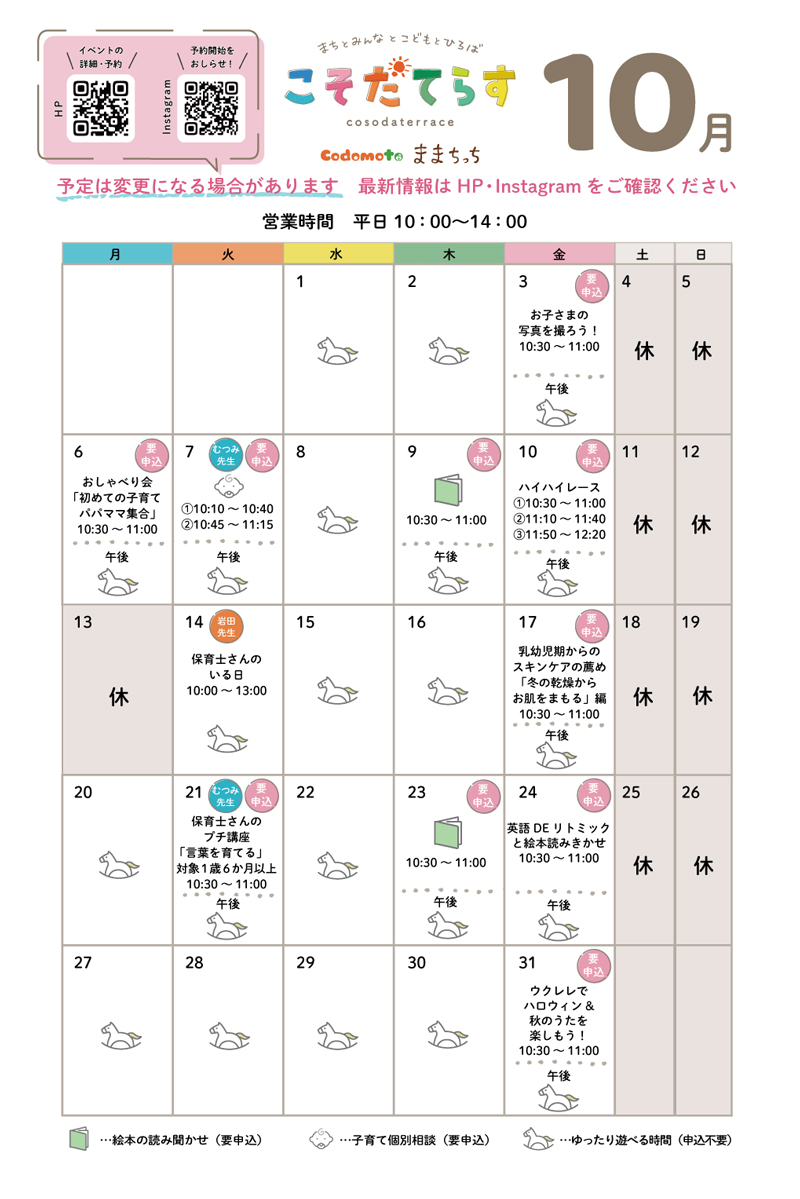 こそだてらす10月スケジュール