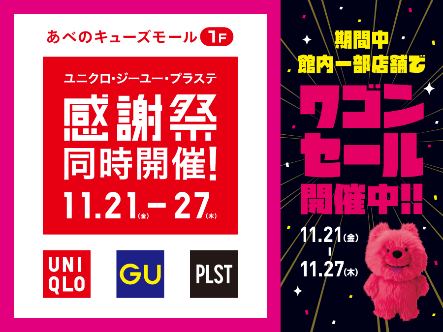 11/21(金)~27(木)はユニクロ・ジーユー・PLST感謝祭!
