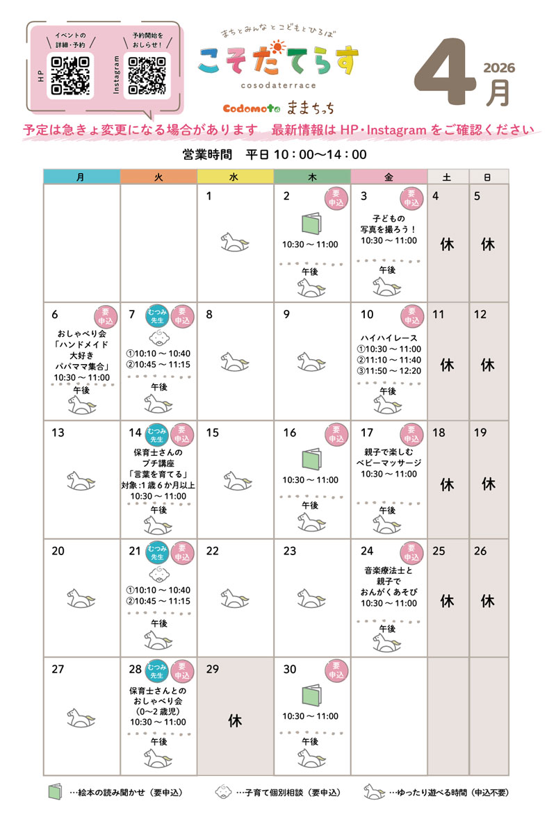 こそだてらす4月スケジュール