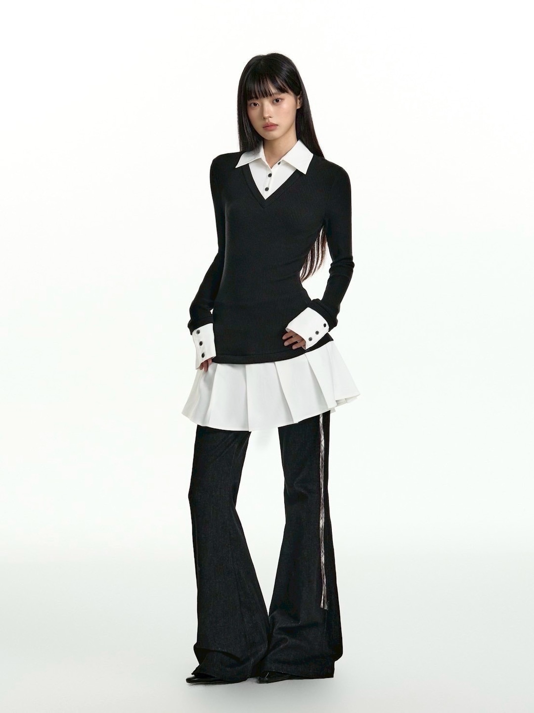 【TGNS】Fake Two-Pierce Stitching Bottoming Shirt