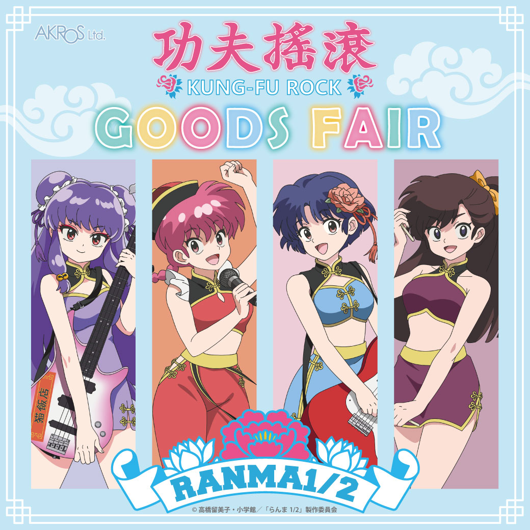 らんま、あかね、シャンプー、右京たちのガールズロックバンド「KUNG-FU ROCK(カンフーロック)」のオリジナル描き下ろしイラストのグッズや新作を取りそろえたグッズフェア開催中!