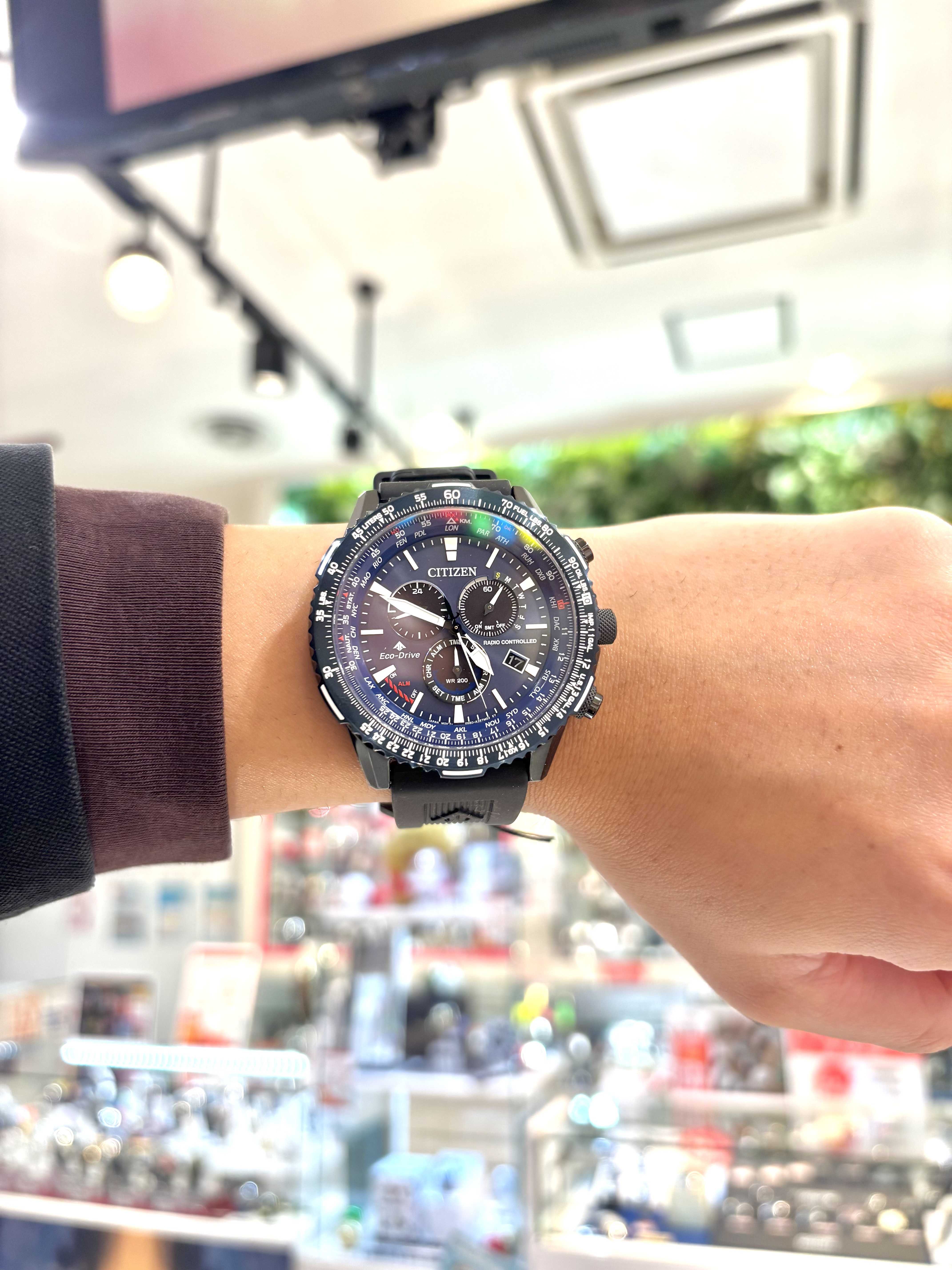 深夜の空を連想させる濃いブルーのベゼルと文字盤が特徴のパイロットウォッチ。