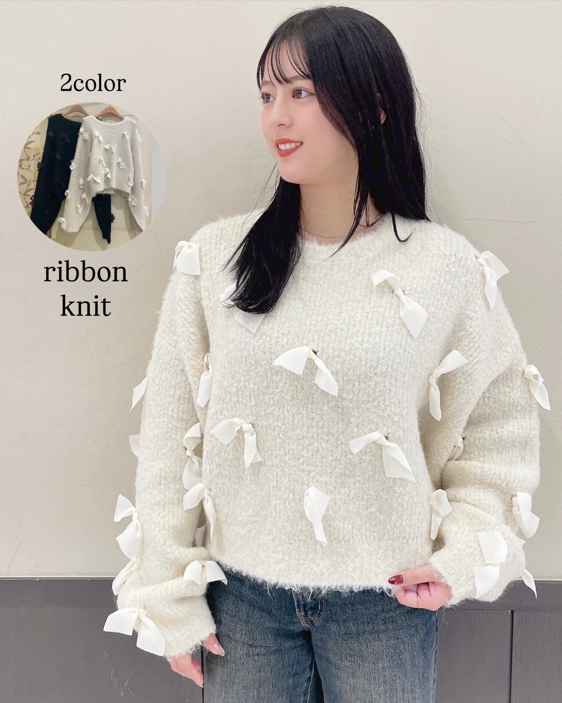 NEW 更新日:2025.12.20 LuLuLuniy 06-6646-1202 リボンニット 全体的にあしらわれた、リボンが特徴的なニット 袖はゆったりとしたボリュームスリーブ リラックス感のある着心地ながらも、女性らしいシルエットを演出します 関連キーワード #コーデ #お出かけ X この店舗のショップニュース ボーダーニット モヘアニット ロゴニット ボーダーニット