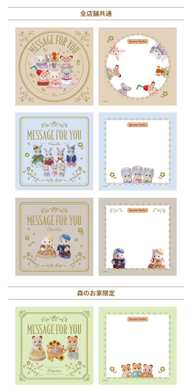 概要:シルバニアファミリー商品お買い上げ2,000円(税込)毎に、「オリジナルメッセージカード」をプレゼントいたします。