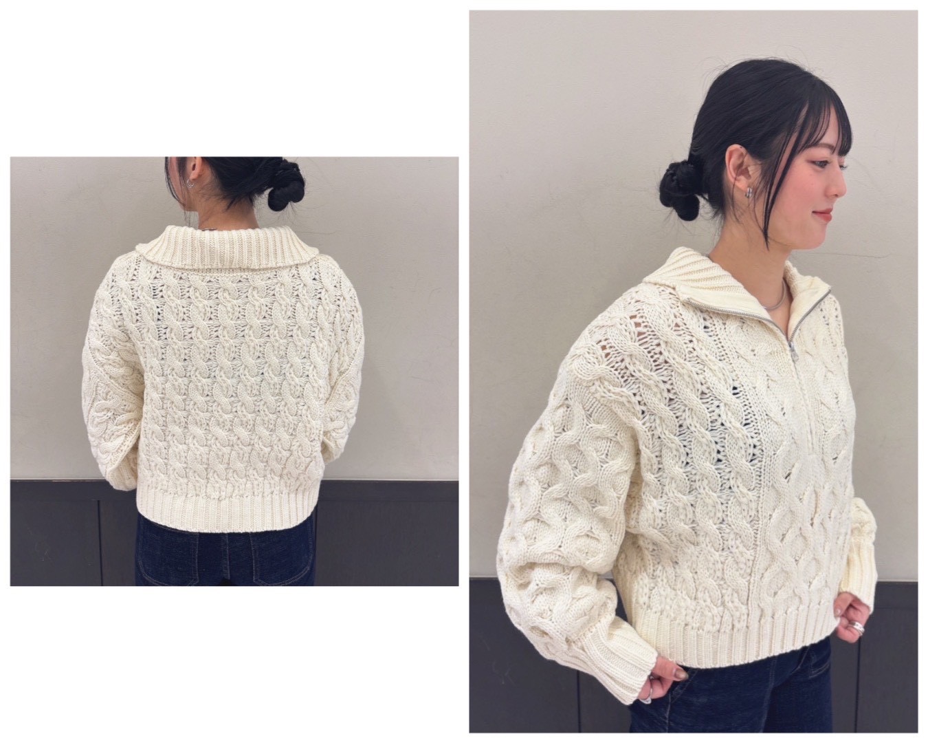 NEW 更新日:2026.01.23 LuLuLuniy 06-6646-1202 ケーブルニット 立体感のあるケーブルバルキーが今年らしく、ふっくらふんわりと柔らかい質感がシーズンムードを高めてくれます ハーフジップの開閉でニュアンスを変えられ、抜け感のあるスタイリングが楽しめます 関連キーワード #コーデ #お出かけ X この店舗のショップニュース ロゴプリントプルオーバー フェザーヤーンカーディガン ロゴニット セール開催中!