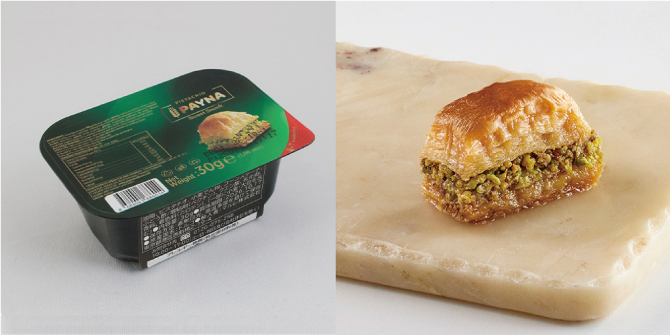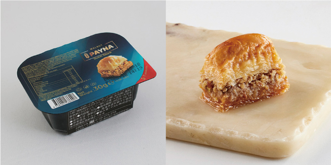何層にも重なる薄いパイ生地の間にナッツやピスタチオがたっぷり入っています。