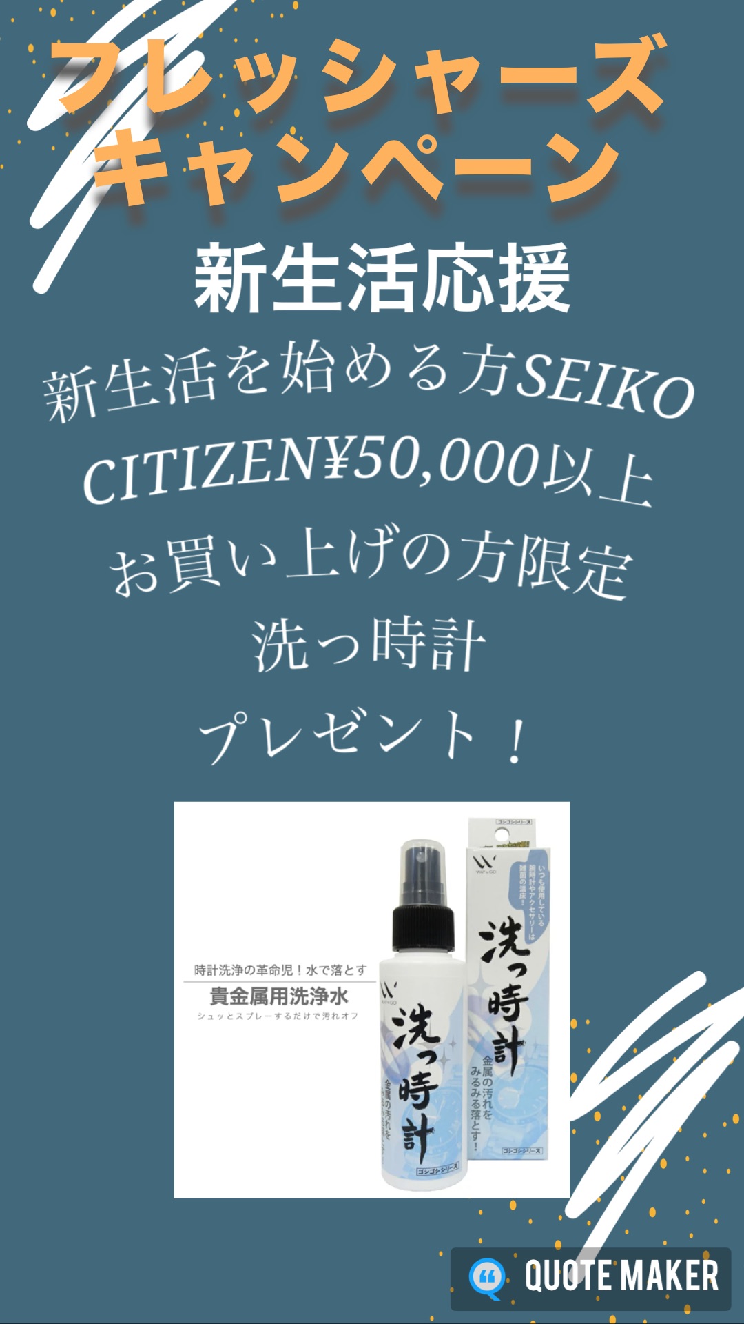 SEIKO/CITIZEN ¥50,000以上お買上げの方を対象に「洗っ時計」をプレゼント