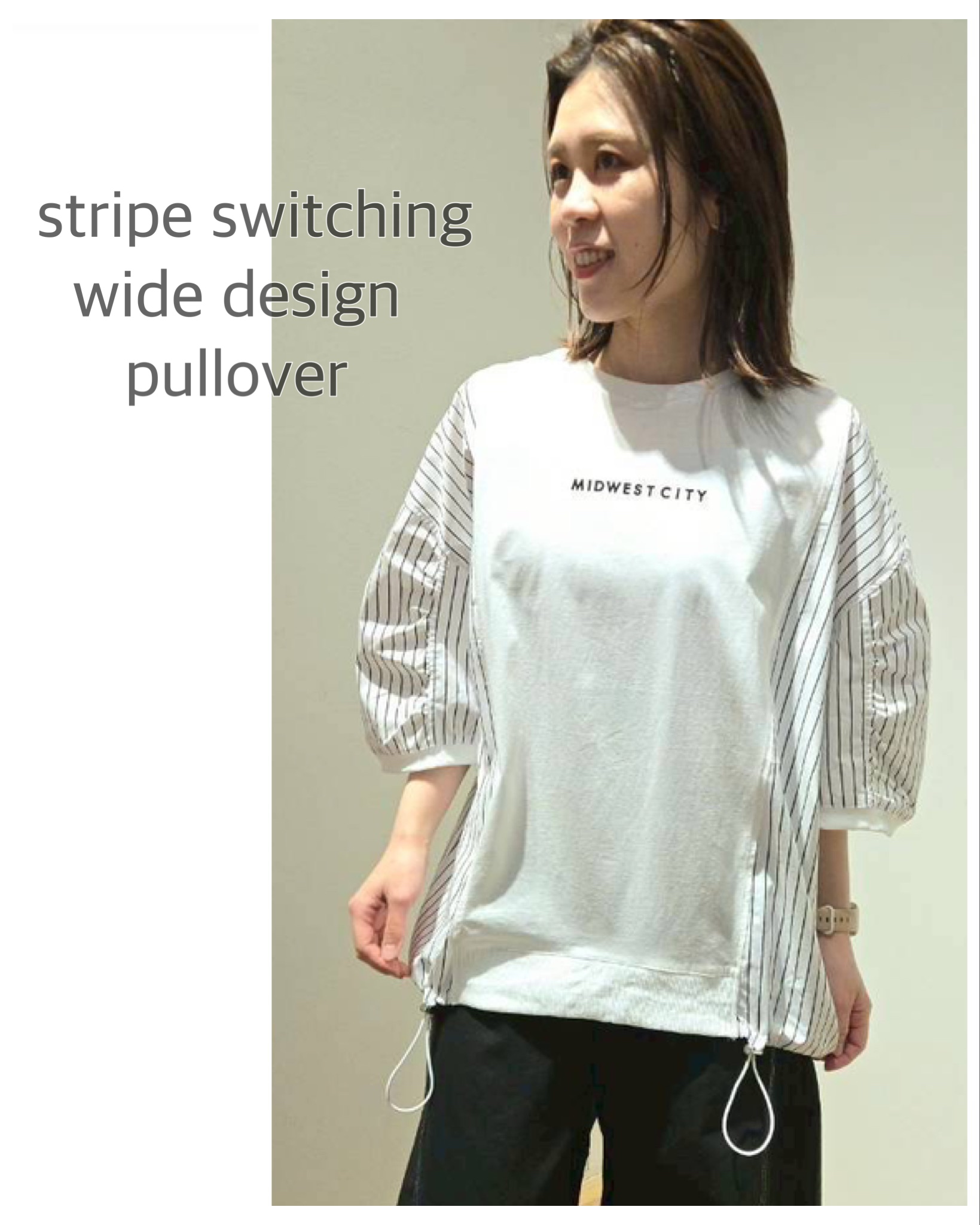 NEW 更新日:2026.03.22 anRipply 06-6646-1201 ストライプ切替ワイドデザインプルオーバー ストライプとの切替デザインがポイントのプルオーバー☆ カラーは3色展開!! 後ろはヒップも隠れる丈感です◎ オンラインストア インスタグラム 関連キーワード #記念日 #プレゼント #新商品 #コーデ #お出かけ X この店舗のショップニュース 期間限定2BUY 10%OFFフェア開催!! ☆anRipplyインスタLIVE☆ ヘンリーネックメッシュニット ニットベスト ワッシャースカート オーバーサイズベスト ロゴプリントロンT キルティングショルダーバッグ ツイル配色ステッチバレルパンツ ツイルバルーンジャケット