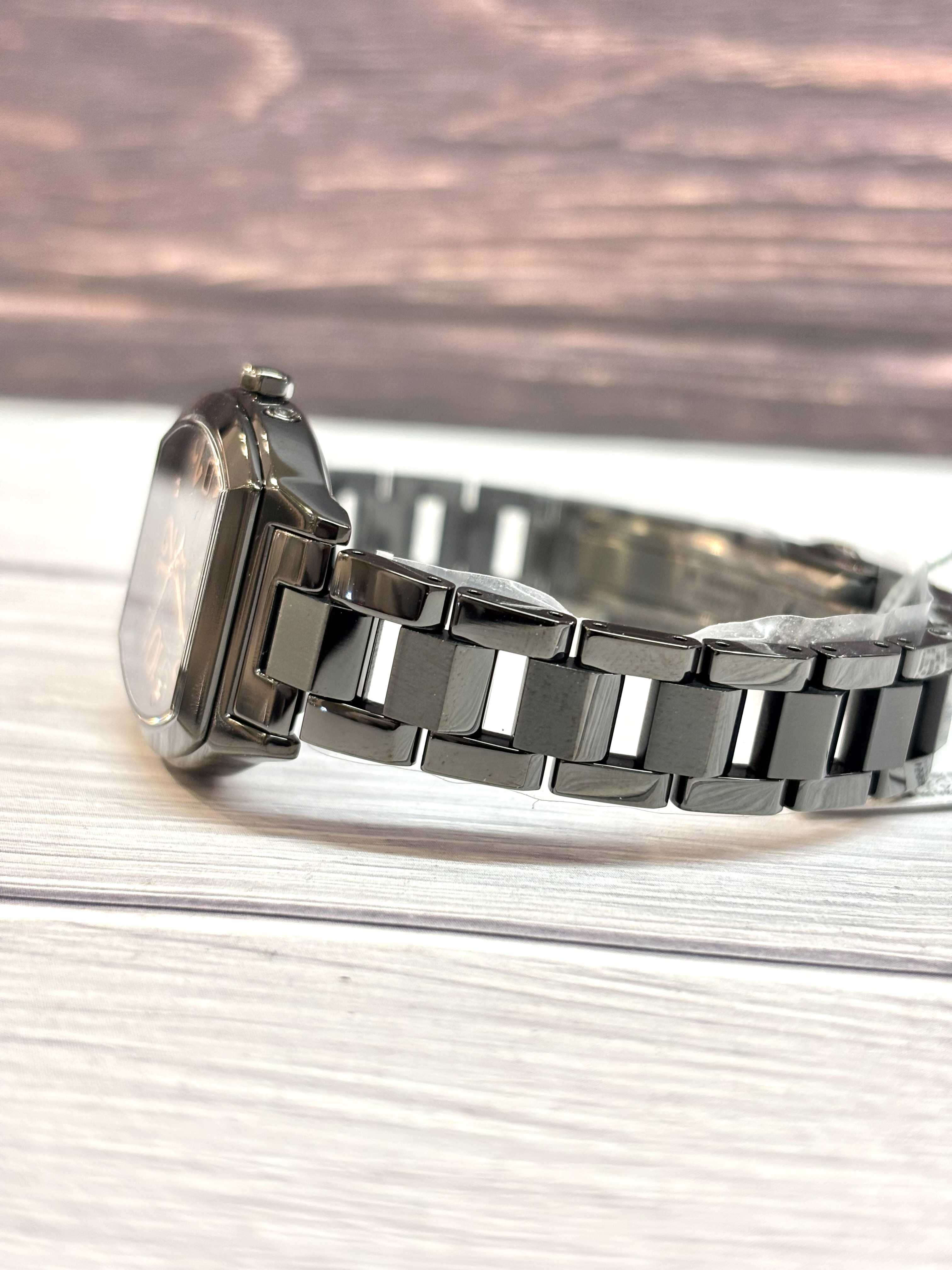ブラックはキリッと引き締め効果、針やインデックスはオシャレなピンクゴールドカラーを採用しています。