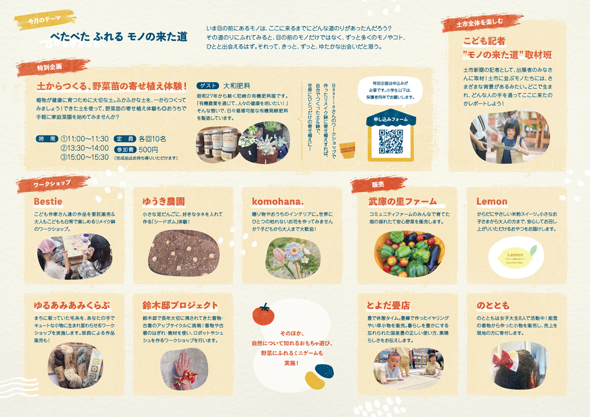 ※土市では土や自然にまつわるワークショップを行っています。そのため汚れてもいい服装でのご参加をおすすめしています。