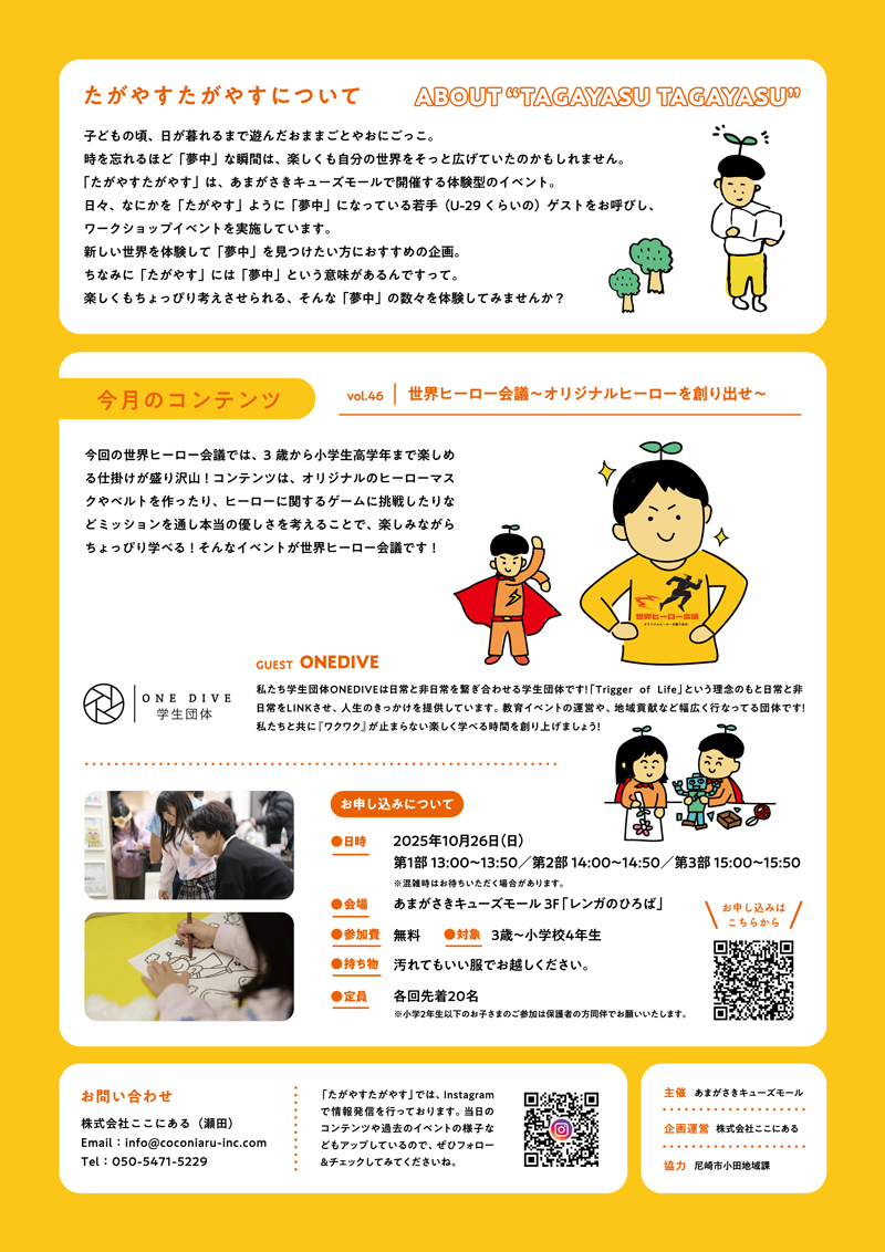今回のコンテンツは、3歳から小学生高学年まで楽しめる仕掛けが盛り沢山の世界ヒーロー会議です!オリジナルのヒーローマスクやベルトを作ったり、ヒーローに関するゲームに挑戦したりなどミッションを通し本当の優しさを考えることで、楽しみながらちょっぴり学べます!世界ヒーロー会議、ぜひ一緒にたのしみましょう!!