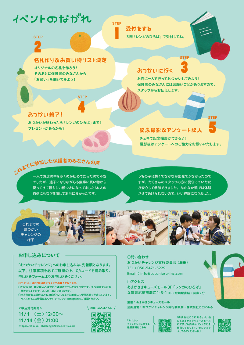 おつかいにチャレンジして大人への第一歩を踏み出してみて。保護者のみなさんにとってはお子さんの成長を感じられる機会にきっとなるので、ぜひ一緒にご参加くださいね。