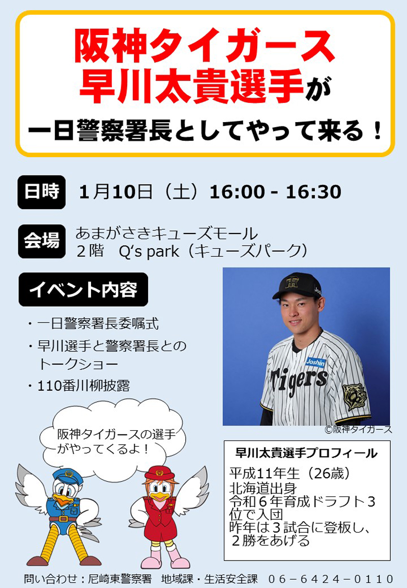 阪神タイガースの早川太貴選手が110番の日キャンペーンの一日警察署長としてやって来ます!