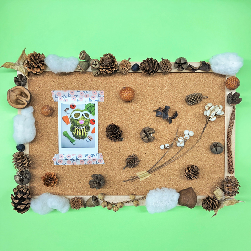 Q's farm産のワタと木の実を使ってオリジナルのコルクボードを作ってみよう!