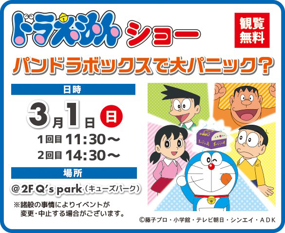 ※メール送信時は、タイトルを「ドラえもんショー問合せ」としてください。