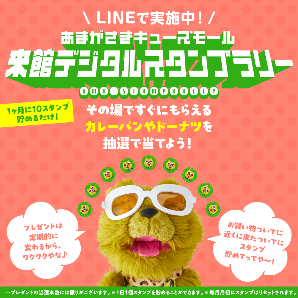 スタンプを貯めてカレーパンやドーナツを当てよう! あまがさきキューズモール来館デジタルスタンプラリー