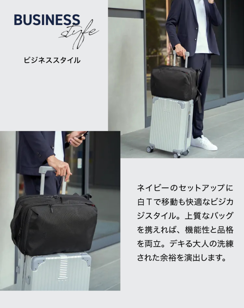 内部には15インチ対応のPCスリーブを備え、ビジネスシーンでも安心。