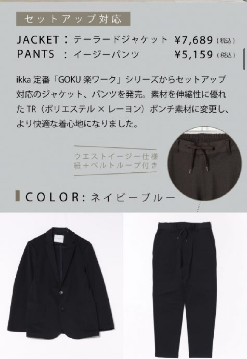 ikka 定番のワークアイテム「GOKU楽ワーク」シリーズの秋冬版。