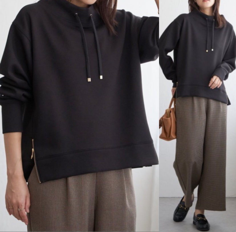 ・首元にきれいに沿ったモックネックはカジュアル過ぎず大人な雰囲気の抜け感を演出