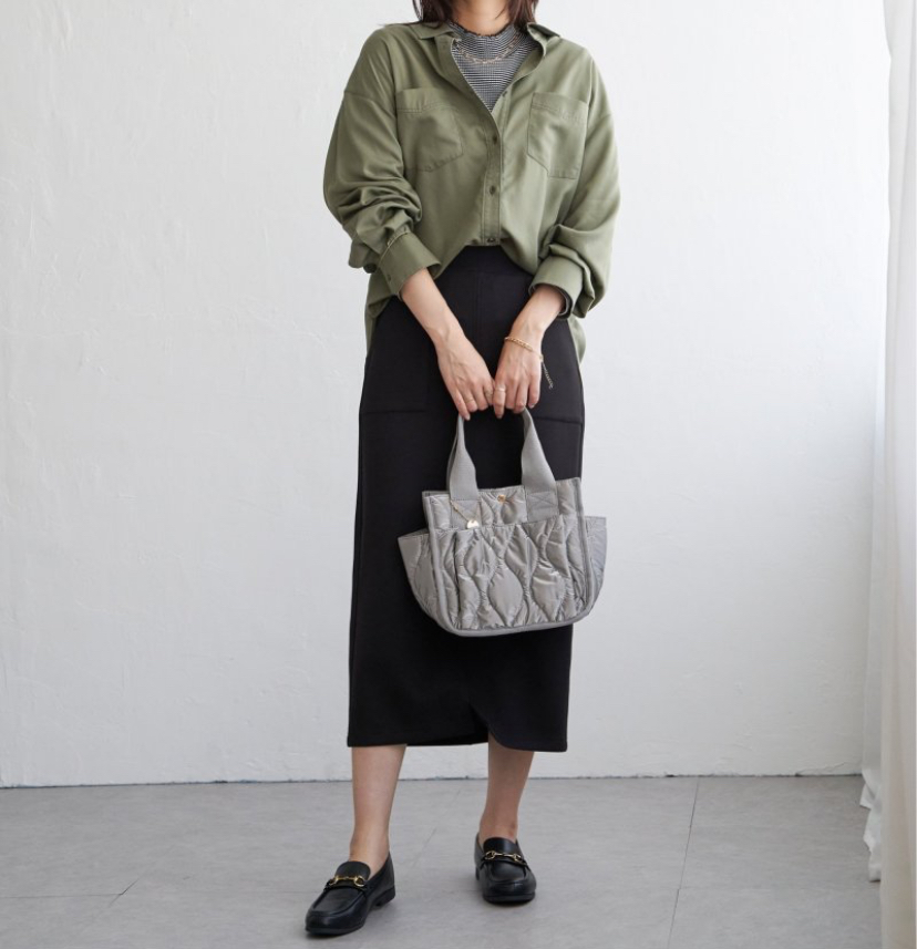 クリーンな表面感があり、カジュアルなトップスと合わせても上品に仕上がる万能アイテムです。