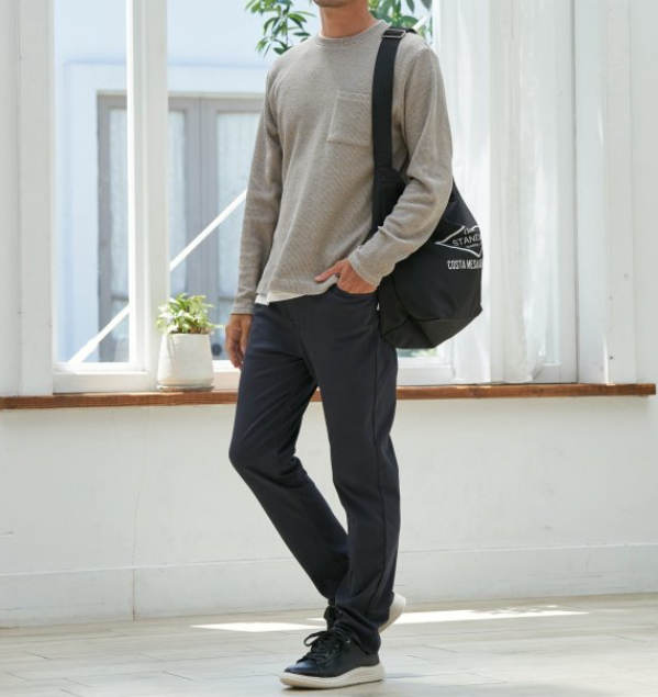 着込まずに洒落る、ワザありロンT メランジワッフルポケフェイクロンT 税込¥3,729