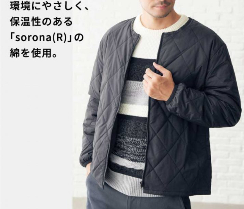 中綿には、原料に植物由来原料を使用した、環境にやさしく保温性のある「sorona(R)」を使用しています。