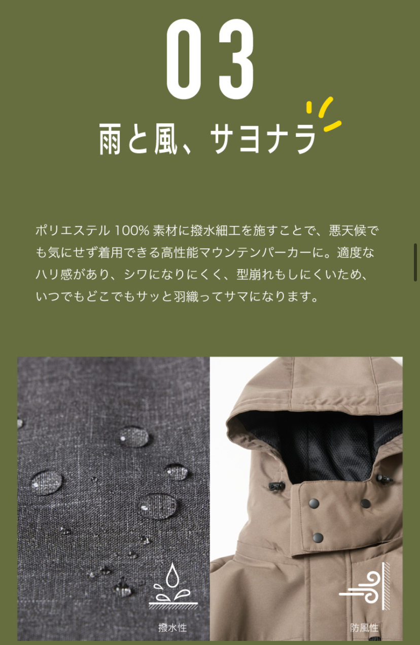 ロングシーズン使える3WAY仕様のマウンテンパーカー。