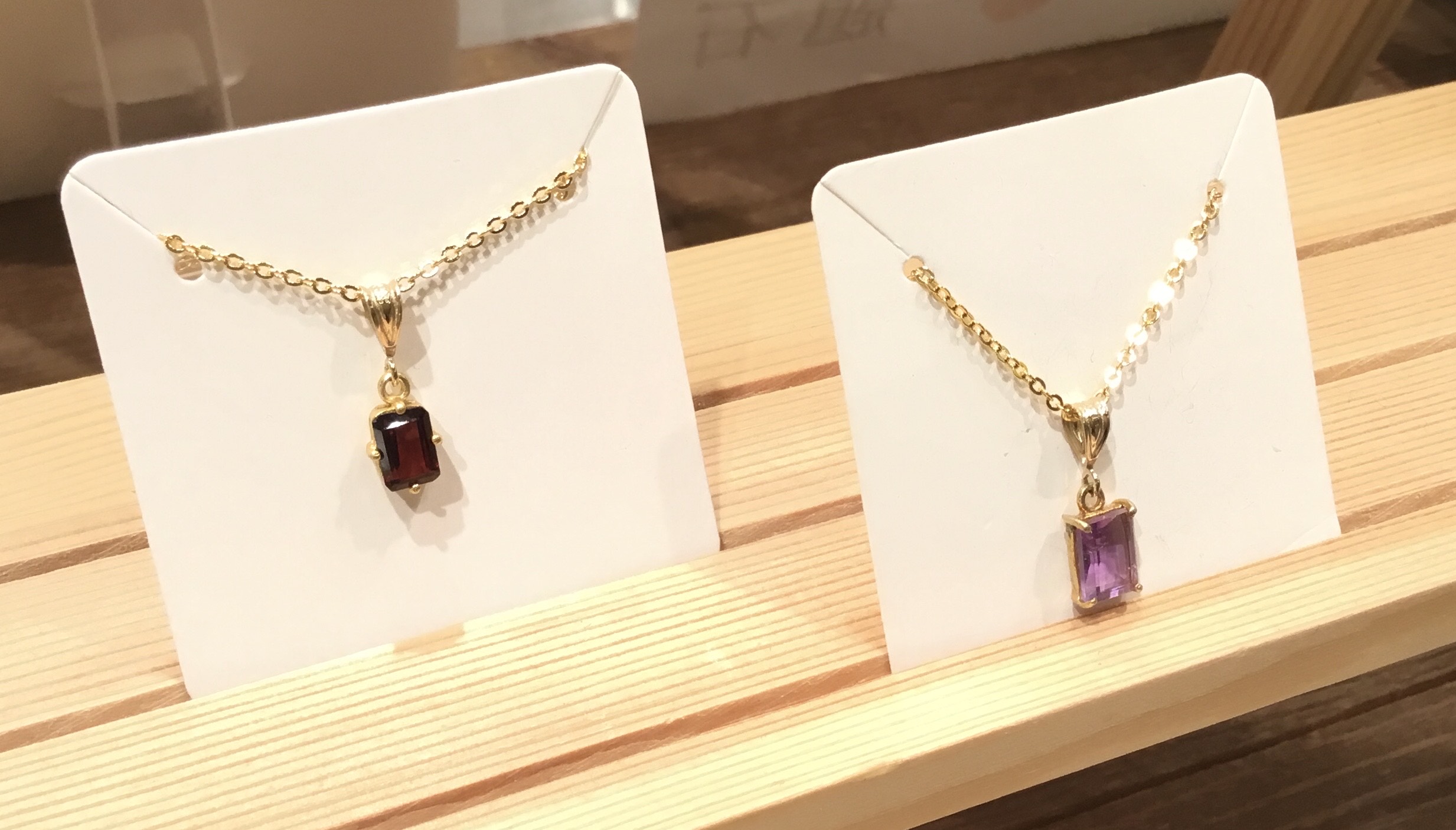 ガーネット、アメジストのスクエアカットのネックレス 税込¥3,300