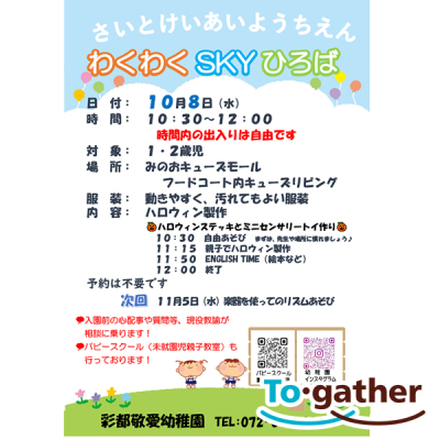 【10月前半】キューズ子育てつどいのひろばイベント情報 |みのおママの学校
