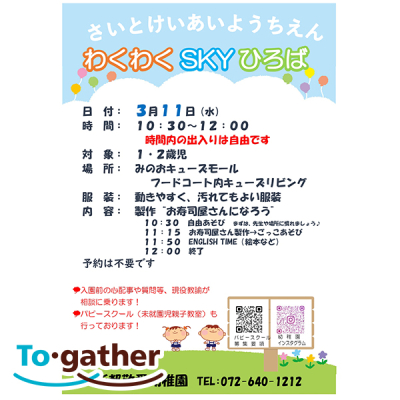 【3月前半】キューズ子育てつどいのひろばイベント情報 |みのおママの学校