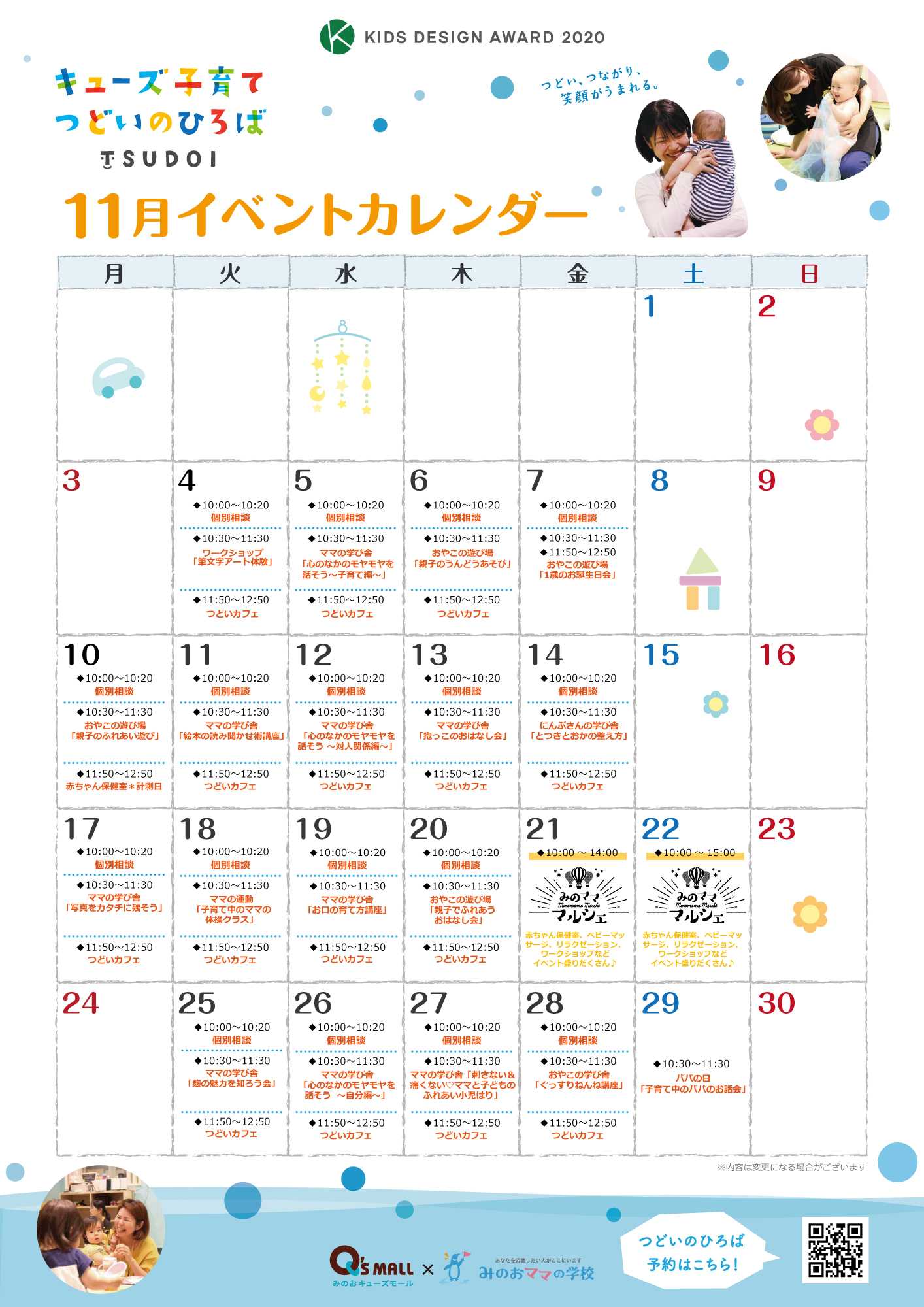 【11月前半】キューズ子育てつどいのひろばイベント情報 |みのおママの学校