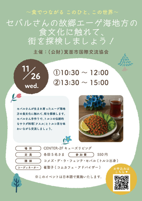 箕面市国際交流協会主催 セバルさんの故郷エーゲ海地方の食文化に触れて、街を探検しましょう!