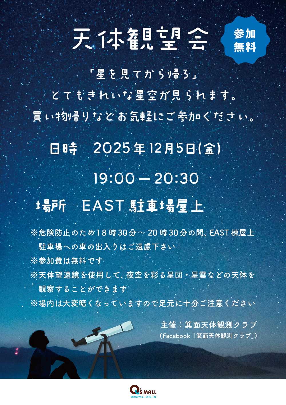 とてもきれいな星空が見られます。買い物帰りなどお気軽にご参加ください。