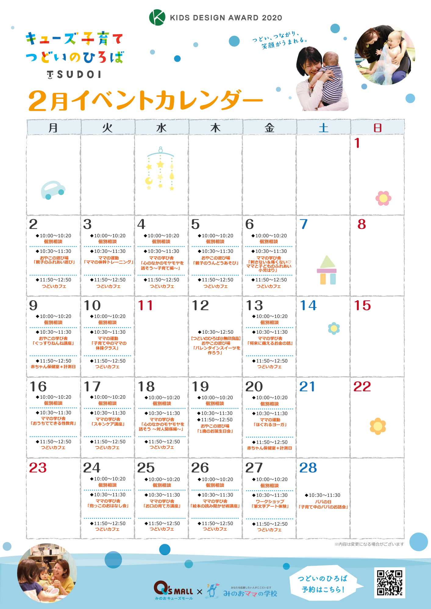 キューズ子育てつどいのひろばイベント情報 |みのおママの学校
