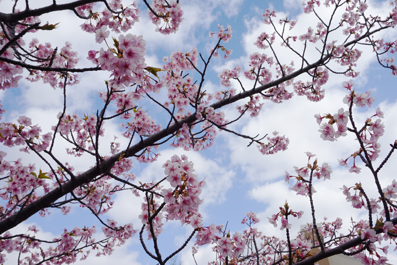 施設北側、千里川沿いの早咲きの桜が見頃を迎えています!