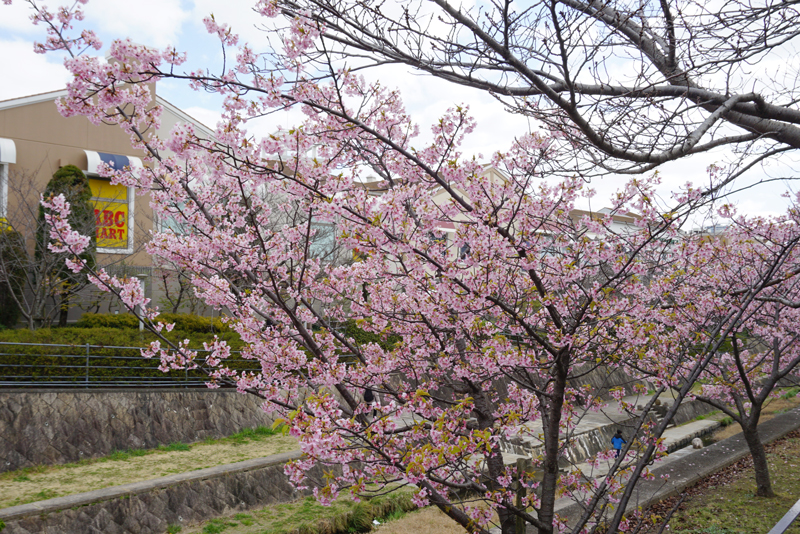 (↑施設北側 千里川沿い 3/8撮影)