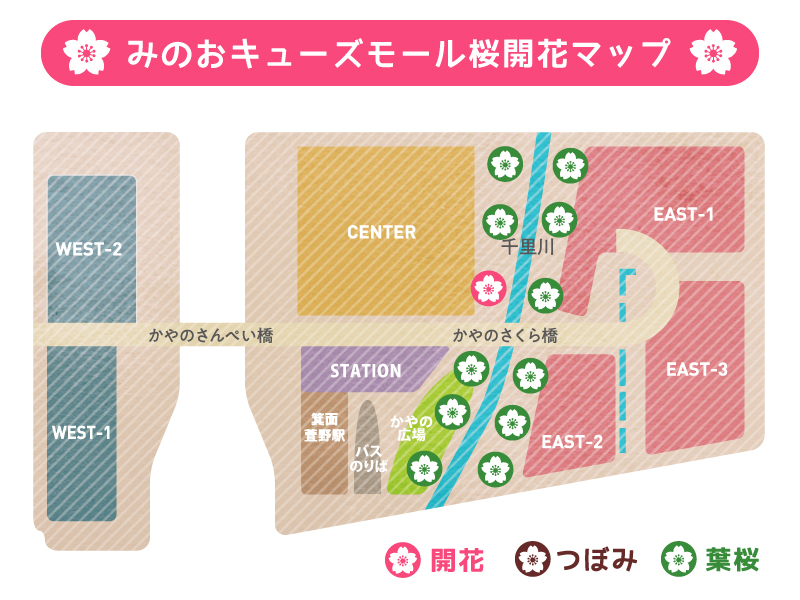 ぜひみのおキューズモールでランチなどテイクアウトしてお花見を楽しまれていはいかがでしょうか♪
