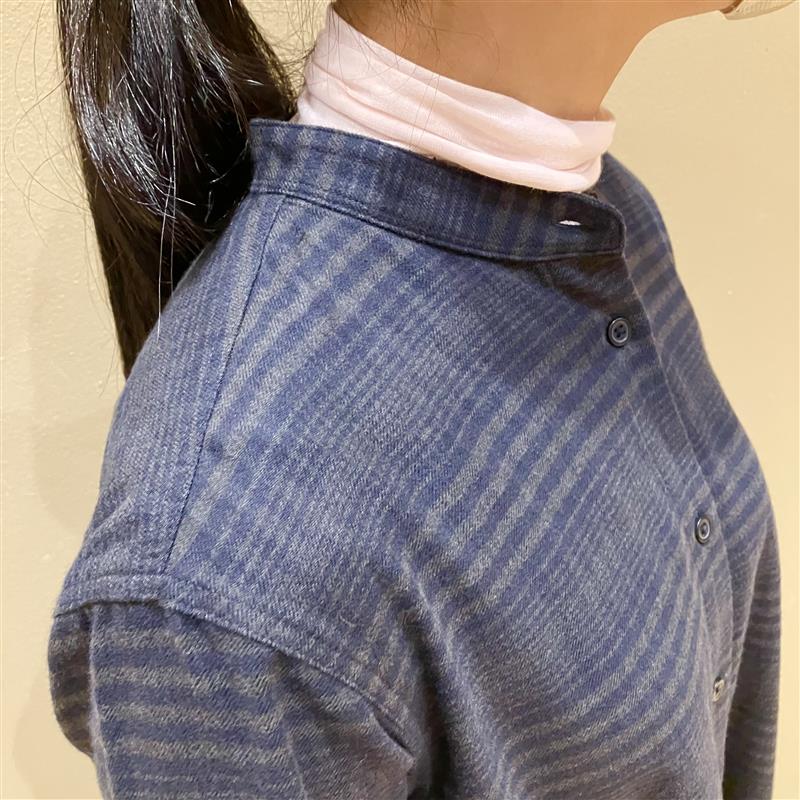 首元がスタンドカラーのため、さらに冷え込む季節にはハイネックなどを