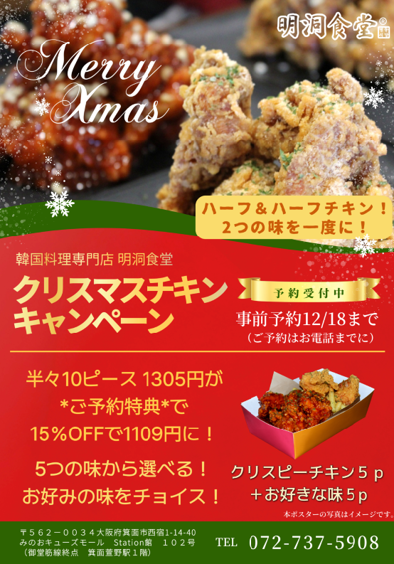 韓国式クリスマスチキン!事前予約でお得にゲット♪