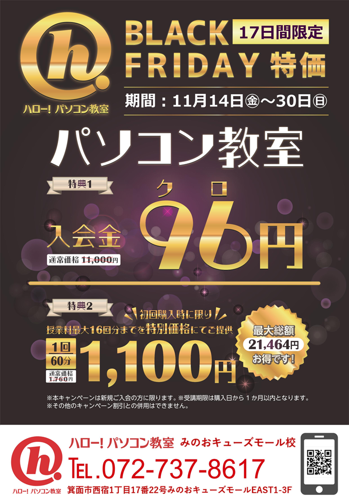 ハロー!パソコン教室 ブラックフライデーのお知らせ