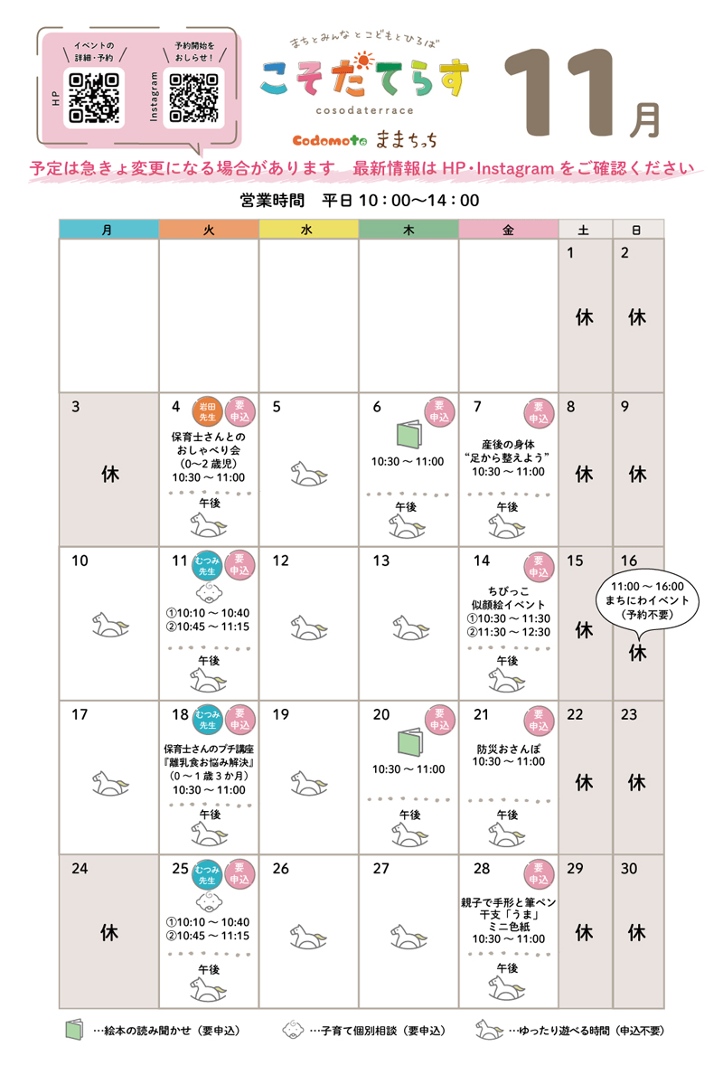 こそだてらす11月スケジュール
