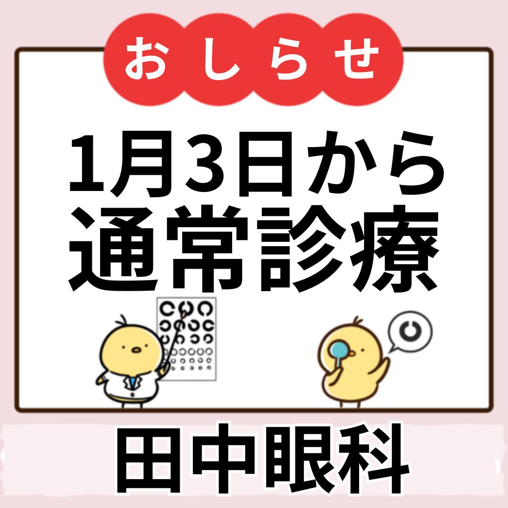 NEW 更新日:2025.12.26 田中眼科 06-6644-7001 【年末年始休診日のお知らせ】 【年末年始休診日のお知らせ】 2025年12月30日までは通常診療を行います。 2025年12月31日~2026年1月2日は休診とさせていただきます。 2026年1月3日より通常通り診療を行います。 何卒よろしくお願いいたします。 X この店舗のショップニュース 田中眼科|19:00まで受付・土日祝診療 当院ではコンタクトレンズ処方は小学5年生から