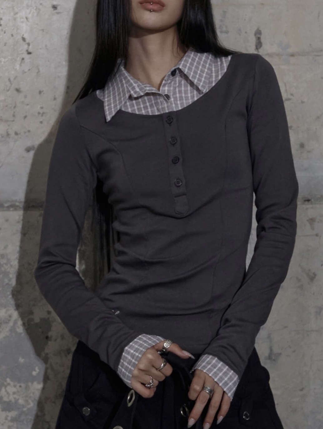 1枚で2枚着ているようなレイヤードアイテムで、こなれ感もUP!