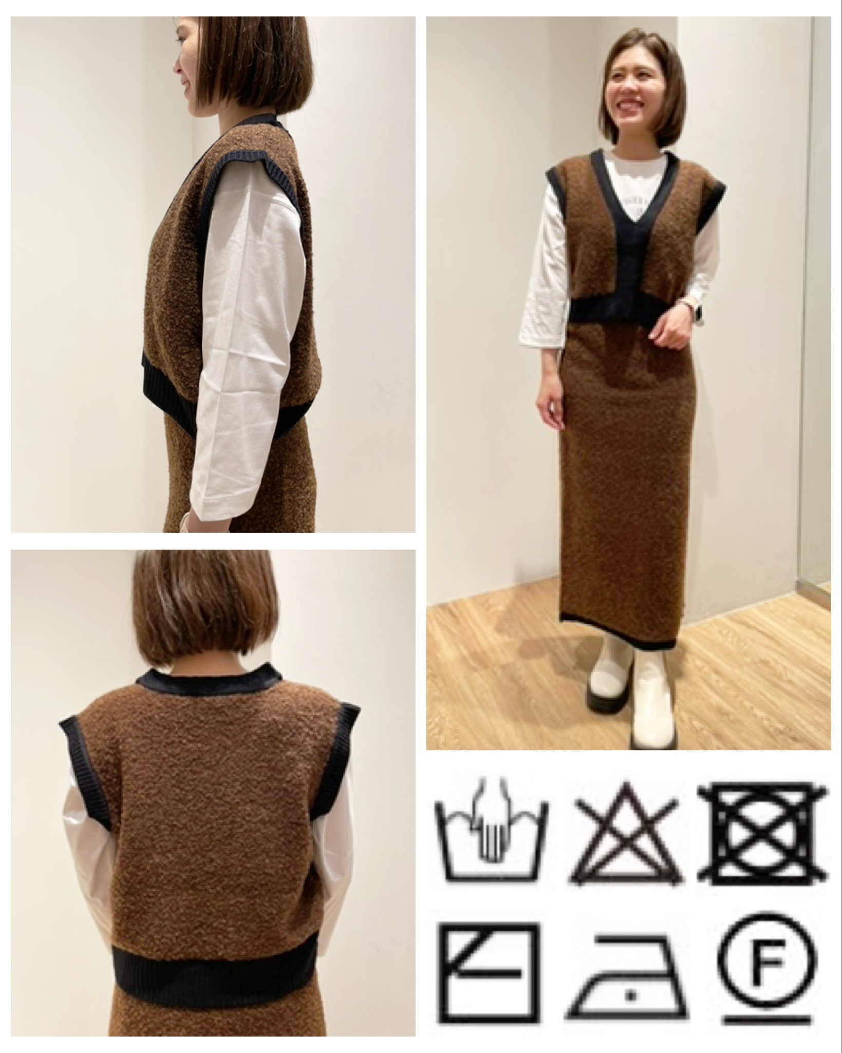 同素材のニットスカートとセットアップで楽しむことができる1枚です。