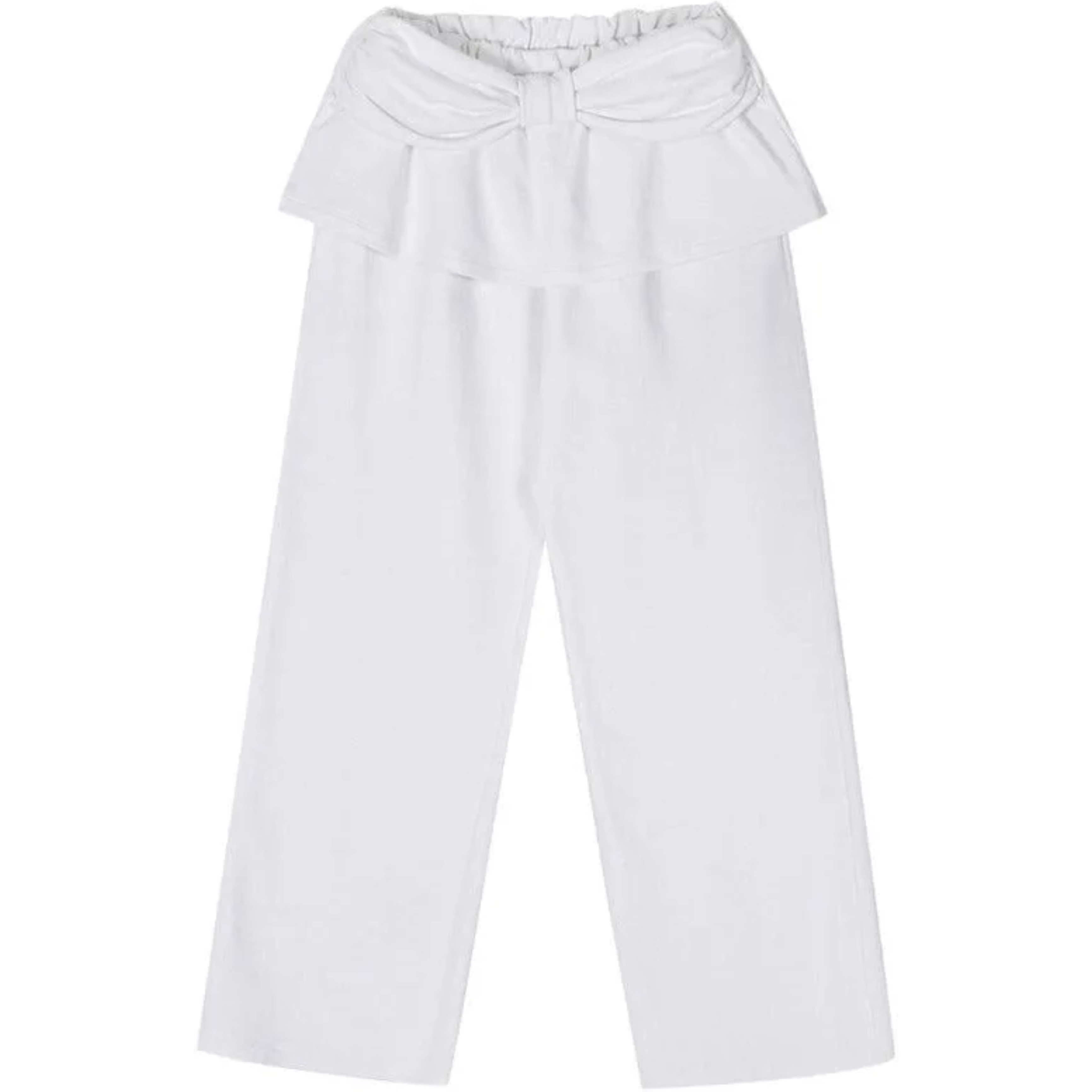 ウエストの大きめリボンが目を引くデザインで、スウェット素材でもラフすぎず上品な印象に。楽な履き心地ながら、しっかり"おしゃれ見え”するのが魅力です。