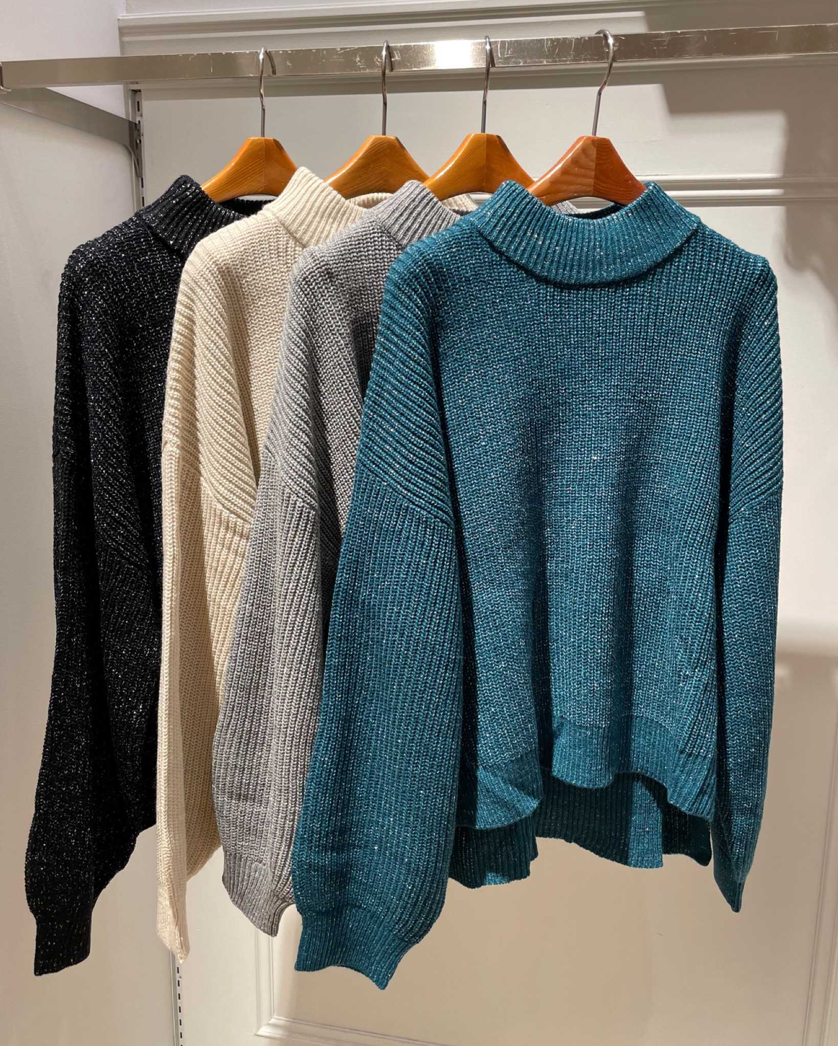 更新日:2025.11.12 anRipply 06-6646-1201 ラメハイネックニット トレンドライクなラメ素材ニットが登場! キラキラの糸を編み込んだラメニットのプルオーバーです。 ゆったりとしたサイズ感とプチハイネックデザインでメリハリのあるシルエットに。 チクチクしない、柔らかく弾力のあるアクリル素材のニットです◎ オンラインストア インスタグラム 関連キーワード #記念日 #プレゼント #新商品 #期間限定 #コーデ #お出かけ X この店舗のショップニュース フェザージャガードニットプルオーバー フェイクスエードスタッズバッグ シャギーボーダーニット フリンジニットプルオーバー レイヤードロゴプルオーバー 襟付き3WAYリバーシブルキルトファーブルゾン レザーライダービッグカラージャケット ミニニットバッグ ロゴニット帽 ロゴキャップ