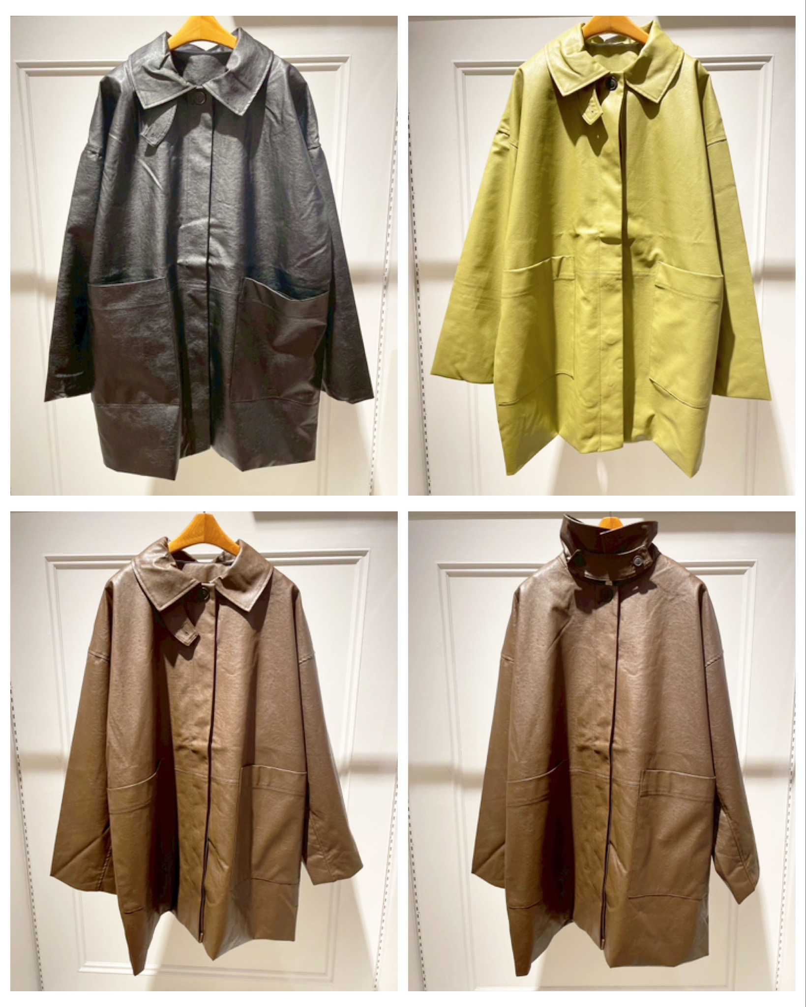NEW 更新日:2025.12.03 anRipply 06-6646-1201 フェイクレザーオーバーコート オーバーサイズシルエットで羽織るだけで雰囲気たっぷりのフェイクレザーコート。 本革のように、なめらかでソフトな風合いが魅力のフェイクレザーを使用しています。 長めにデザインされた丈感で気になるヒップもカバー◎ ミドル丈で動きやすく、ジャケット感覚でラフに羽織れるコート。 フロントには大きめのポケット付き。ステンカラー、スタンドカラーの衿2WAY仕様です。 オンラインストア インスタグラム 関連キーワード #記念日 #プレゼント #新商品 #期間限定 #コーデ #お出かけ X この店舗のショップニュース アニマル柄チェーンバッグ 「Voila」ロゴプルオーバー ☆インスタLIVE☆ 袖取り外しオーバーライダース フェザージャガードニットプルオーバー フェイクスエードスタッズバッグ シャギーボーダーニット フリンジニットプルオーバー レイヤードロゴプルオーバー 襟付き3WAYリバーシブルキルトファーブルゾン