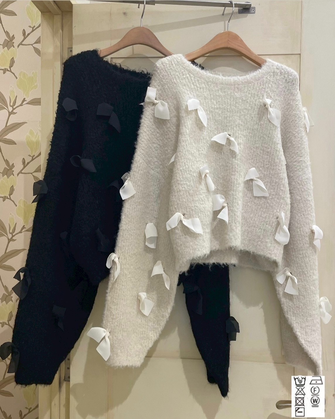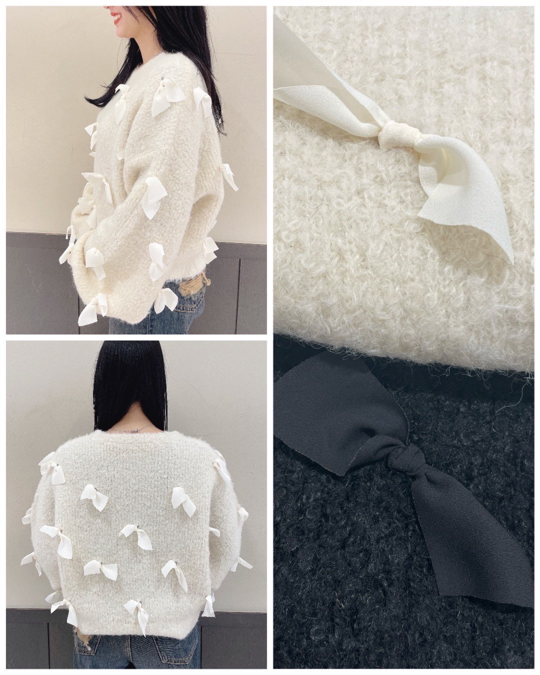 NEW 更新日:2025.12.20 LuLuLuniy 06-6646-1202 リボンニット 全体的にあしらわれた、リボンが特徴的なニット 袖はゆったりとしたボリュームスリーブ リラックス感のある着心地ながらも、女性らしいシルエットを演出します 関連キーワード #コーデ #お出かけ X この店舗のショップニュース ボーダーニット モヘアニット ロゴニット ボーダーニット